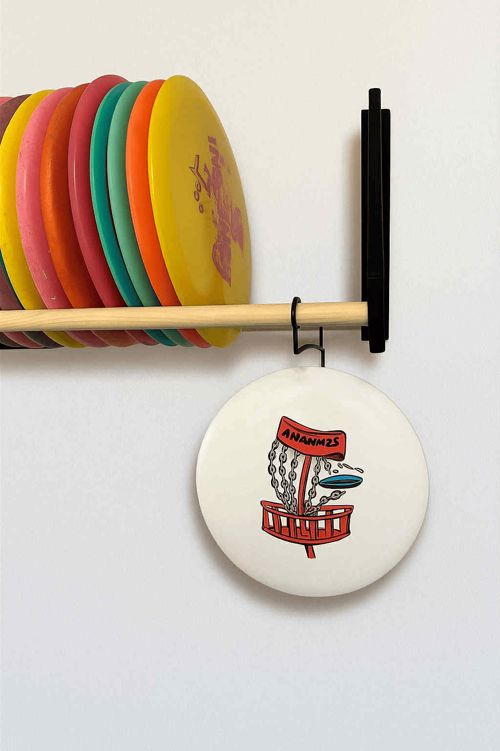 Disc Dock er den stilrene og praktiske oppbevaringsløsningen for deg som vil holde diskgolf-samlingen organisert, synlig og lett tilgjengelig. Med sine kompakte mål på 41 × 21 × 21 cm passer hyllen perfekt på veggen i treningsrommet, garasjen, boden eller stua – uten å ta unødvendig plass.